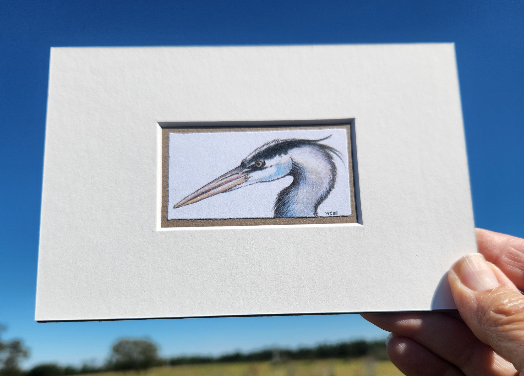 This elegant fellow is a patient fisherman - his culinary preferences also include reptiles, insects and even small mammals. This archival print has a 1.25x2.25 inch image and is mounted and matted to a finished size of 4x6.